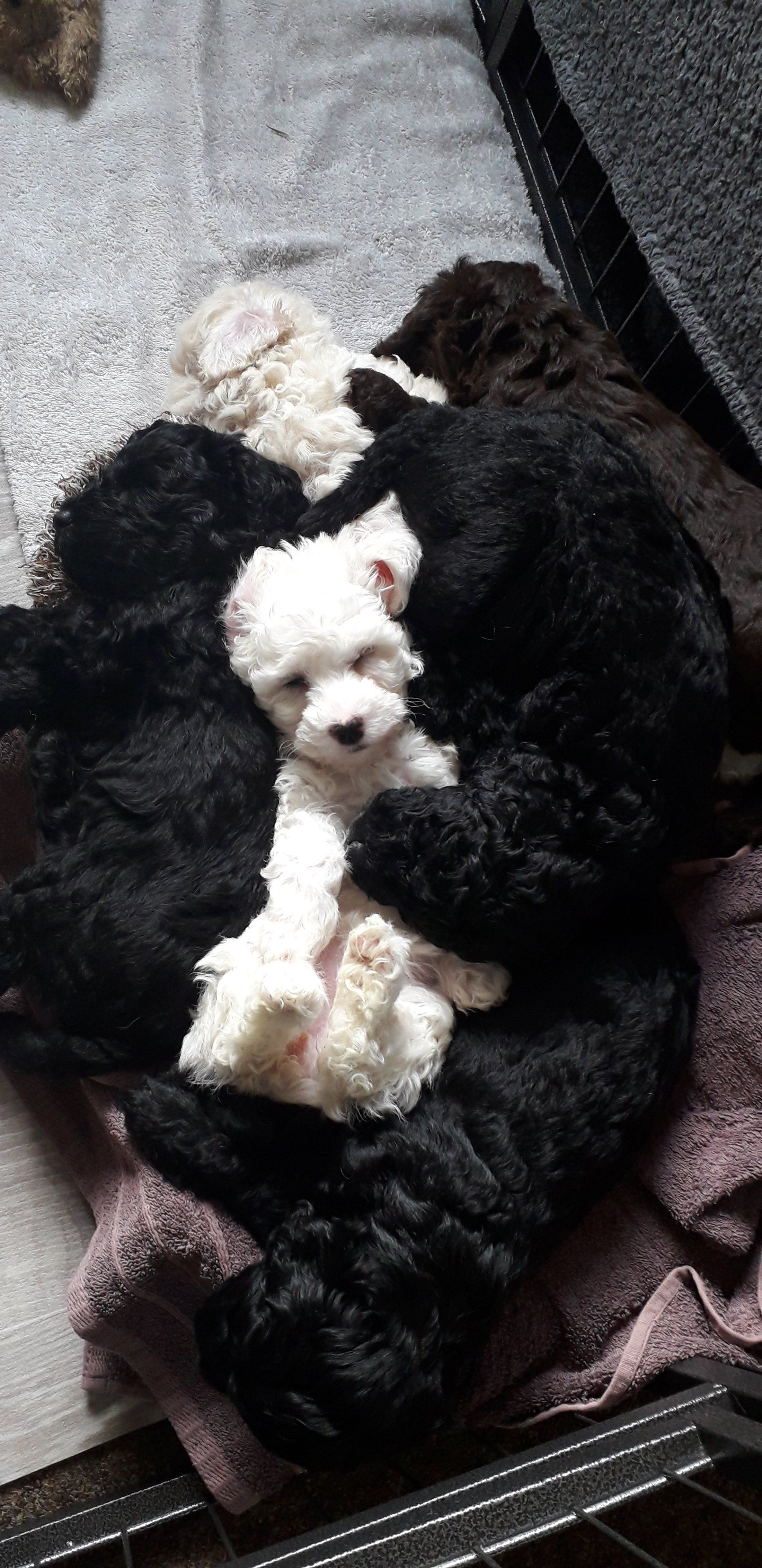 Alles begann mit zwei wunderschönen Cockapoos Pearl und Benjie, die sich liebten, und wir beschlossen, ihnen gemeinsam einen Wurf Welpen zu geben. Nach großen Erfolgen entwickelten wir eine Liebe für das Cockapoo (insbesondere das lockige Fell) und beschlossen, zu erforschen, wie man sowohl genetisch gesunde als auch lockige Cockapoos züchtet. Der F1b ist eine beliebte Cockapoo-Sorte, da er kein Mauser verursacht und hypoallergen ist. Seitdem haben wir einige erlesene Poochons und Maltipoo Welpen gezüchtet, die kleiner sind als die Cockapoo, aber die gleiche wundervolle Persönlichkeit und atemberaubende Erscheinung sowie hypoallergene Eigenschaften haben, um für Allergiker geeignet zu sein.